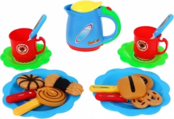 Súčasťou sú tanieriky, hrnčeky, príbory, dózičky na sladkosti, čajník aj pískacia píšťalka – všetko v pestrých farbách. Sada je zabalená vo farebnej darčekovej krabici a je ideálna ako darček. Hračka je určená pre deti od 3 rokov a má certifikáciu CE. Napájanie: 3× AG3 (súčasť balenia).