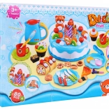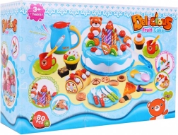 Táto veľká sada na oslavu prináša deťom hodiny fantazijnej hry. Šesťdielna torta sa spája pomocou suchého zipsu a možno ju „krájať“ priloženými nožmi. Vďaka malým otvorom možno tortu bohato zdobiť ovocím, polevami, sviečkami a roztomilým medvedíkom. Väčšia sviečka po stlačení tlačidla svieti dvoma farbami, čo dodá oslave čarovnú atmosféru.