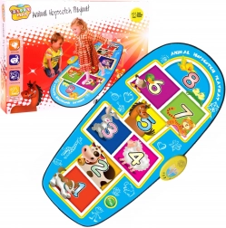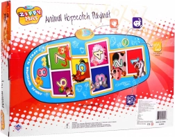Táto farebná skákacia podložka kombinuje pohyb, učenie a zábavu. Každé z 8 veľkých polí je spojené s iným zvieratkom (pes, krava, zajačik, baranček, kôň, kačka, mačka, vtáčiky) a po stlačení vydá svoj charakteristický zvuk. Veľký ovládací panel so svetlami a reproduktorom oživí hru melódiami a motivuje deti k aktívnemu pohybu.