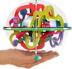 | Predstavuje hru, ktorá vás úplne pohltí. Hra vyžaduje zručnosť a logické myslenie, trpezlivosť. Základným princípom hry je viesť guľôčku radom tunelov k cieľu. Je to ľahké?" Nie celkom, pretože vo vnútri je mnoho nástrah, slepých uličiek, úskokov. Všetko v 3D. Lopta je veľmi farebná a vyrobená z estetického, odolného plastu. Je určená pre deti od 6 rokov, ale radi si s ňou zahrajú aj dospelí. Hračka má certifikát CE. Hra je zabalená v farebnej krabici, ideálnej ako darček. | |