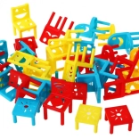 - 36 dielov: 30 stoličiek rôznych tvarov a farieb, 6 stolíkov