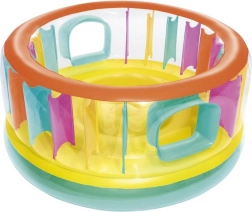 Doprajte deťom hodiny bezpečnej zábavy s nafukovacou trampolínou BESTWAY. Vďaka mäkkej nafukovacej podlahe, polstrovaným stenám a okienkam na jednoduchý vstup je skákanie, váľanie aj lezenie pohodlné a bezpečné. Farebný dizajn podnecuje hru, zatiaľ čo pevný vinylový materiál zaručí dlhú životnosť. Ideálna pre deti 3–6 rokov s nosnosťou až 85 kg.