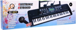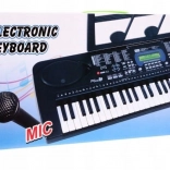 Balenie obsahuje klávesnicu, napájací adaptér, mikrofón a stojan na noty.