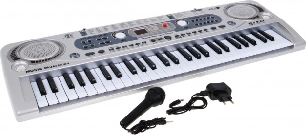Objavte zábavný a vzdelávací hudobný nástroj pre deti 5+. Tento strieborný elektronický keyboard ponúka 54 kláves, USB vstup, nahrávanie a vstavané reproduktory. Vďaka 100 tónom, 100 rytmom, 10 demo skladbám a priloženému mikrofónu je ideálny na prvé kroky vo svete hudby.