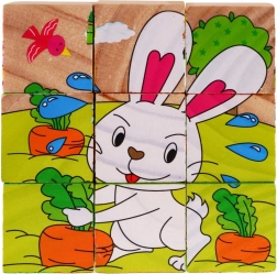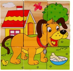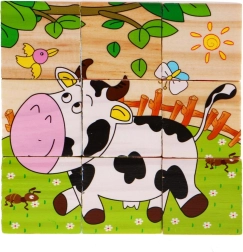 | | Drevené kocky s obrázkami zvieratiek sú ponukou pre deti od 18 mesiacov. Kocky sú robustné a bezpečné pre deti. Sada obsahuje 9 kociek, z ktorých možno poskladať 6 obrázkov zvieratiek: psíka, ovečku, káčatko, kuriatko, zajačika a kravičku. Hra s kockami u detí rozvíja fantáziu a kreativitu. |