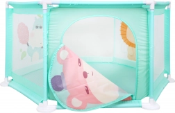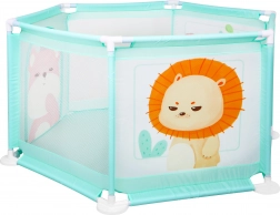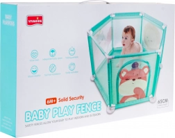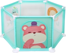 Ohrádka vytvára pre bábätko bezpečný priestor na hranie bez ostrých ani malých dielov. Tri steny zo sieťoviny zabezpečujú výborné prúdenie vzduchu aj neustály vizuálny kontakt, zatiaľ čo ostatné panely zdobia veselé potlače zvieratiek, ktoré deti zaujmú. Stabilný rám s kvalitnými plastovými spojkami drží tvar a odolá každodennému používaniu.