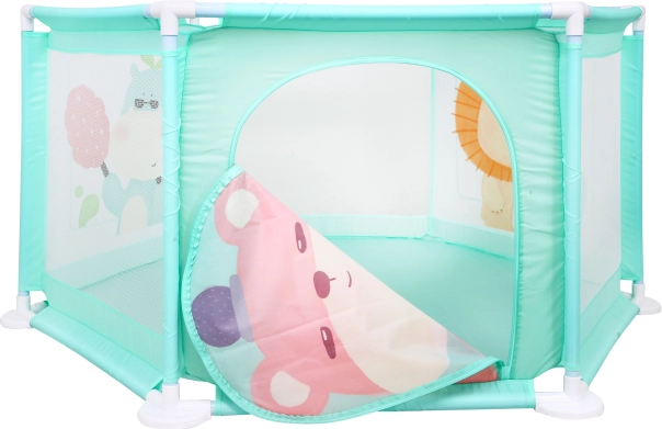Bezpečná a priestranná ohrádka pre deti od 6 mesiacov poskytne vášmu bábätku vlastné miesto na hranie. Ponúka stabilnú šesťuholníkovú konštrukciu, priedušné sieťované steny pre skvelý dohľad a dvierka na zips pre pohodlný vstup. Ľahko sa čistí, je ľahká na prenášanie a hodí sa do interiéru aj exteriéru.
