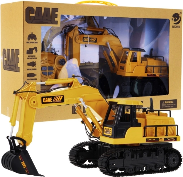 | | Bager je snom každého malého staviteľa. Odolné spracovanie, živé farby, kvalitný plast. Vozidlo jazdí dozadu, dopredu, zatáča doprava a doľava. Pri jazde je počuť zvuk stroja. Pri jazde dozadu je počuť signalizáciu spiatočky. Otočné rameno bagra (360 stupňov) kope, pohybuje sa hore a dolu, ovládané diaľkovým ovládačom. Zvuk klaksónu, živá hudba. Rýpadlo pracuje na frekvencii 2,4 GHz. Hračka je vhodná pre deti od 3 rokov a má certifikát CE. Ekologické balenie typu kufrík s rukoväťou na prenášanie. | Obsah sady | - Bager (napájaný batériou 4,8 V – súčasť balenia), - diaľkové ovládanie (napájané 2 x AA – nie sú súčasťou balenia), - USB kábel, - 2x výstražná tabuľka, - 2x kužeľ. | Rozmery | |
