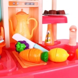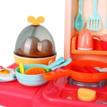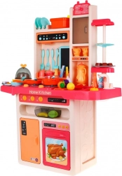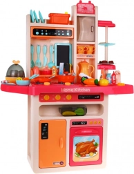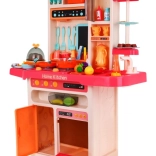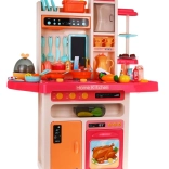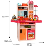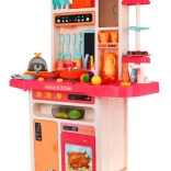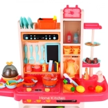 Veľká multifunkčná detská kuchynka prináša reálnu hru na varenie vďaka tečúcej vode z kohútika, svetelným a zvukovým efektom a interaktívnemu horáku s parou. Ponúka 65 doplnkov, vrátane chladničky, rúry, drezu, tabule na kriedu a zábavného „vajcovaru“ na vajíčka. Ideálna pre deti od 3 rokov.