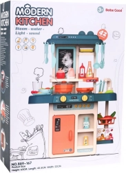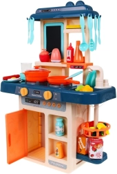 Farebná detská kuchynka 3+ s interaktívnym parným horákom, tečúcou vodou a tabuľou – 42 ks príslušenstva