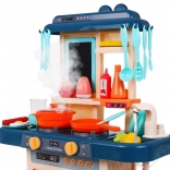 Táto farebná kuchynka je skvelo spracovaná, má živé farby a bohaté doplnky, ktoré podporujú kreatívne hranie a rozvoj jemnej motoriky. Po otočení ovládačov sa ozývajú zvuky varenia a rozsvieti sa červené svetielko. Jeden z horákov navyše vytvára jemnú paru, vďaka čomu pôsobí hra veľmi realisticky.