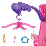 Táto štýlová detská kolíska pre bábiky kombinuje 2 režimy použitia – môže stáť na 4 nohách ako postieľka alebo sa jemne hojdať ako kolíska. Súčasťou je veselý kolotoč so závesnými tvarmi a zvukovými efektmi, ktoré podnecujú fantáziu a rozvíjajú zmysly.