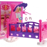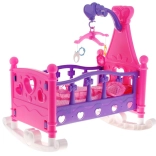 Roztomilá postieľka a kolíska pre bábiky 2v1 s farebným kolotočom a efektmi zvuku poteší každého malého opatrovateľa. Vďaka stabilným nohám aj hojdacím lyžinám je ideálna na hru na domov, uspávanie a starostlivosť o bábiky do cca 50 cm. Súčasťou je vankúšik a perinka, aby bola hra ešte realistickejšia.