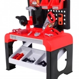 Postavte si vlastnú mini dielňu doma! Tento stabilný detský ponk v červeno‑čiernom prevedení ponúka realistické prvky pre bezpečnú hru – od závesných boxov na drobnosti až po pracovnú dosku s otvormi, do ktorých môžu deti skrutkovať a zostavovať. Vďaka bohatej sade nástrojov deti napodobnia skutočnú prácu remeselníka a rozvíjajú šikovnosť aj predstavivosť.