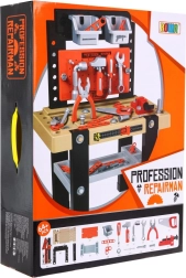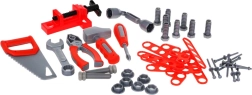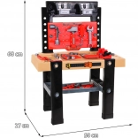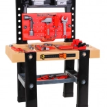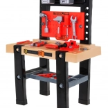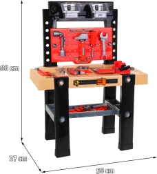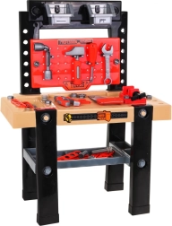 Postavte deťom ich prvú dielňu! Stabilný pracovný ponk s háčikmi, policou a úložnými košmi poskytne prehľadné miesto na hranie aj učenie. Sada obsahuje pestrý výber plastového náradia a spojovacích dielov, ktoré sú bezpečné pre malé ruky a skvelé na nácvik úchopu, koordinácie oko–ruka a trpezlivosti.