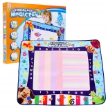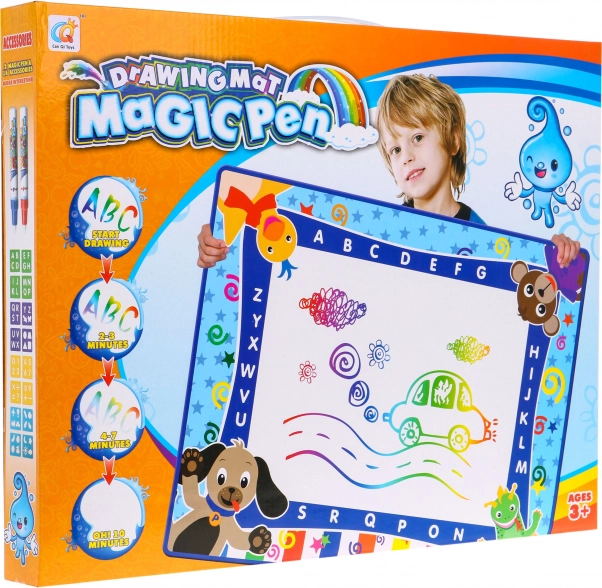 Táto vodná kresliaca podložka je vyrobená z príjemného materiálu, ktorý sa ľahko skladá. Na rozdiel od papiera je opakovaní použiteľná. Kreslite magickou fixkou a po 10 minútach sa môžete znovu pustiť do tvorby. Podložku dopĺňajú šablóny s rôznymi prvkami, ktoré dieťa môže obkresľovať, čím podnecuje jeho rozvoj.