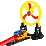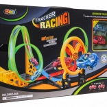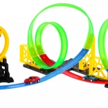 Táto úžasná závodná dráha je navrhnutá pre malé autá, ktoré sa po nej rúti a prekonáva tri slučky, aby nakoniec prekonali pohyblivú obruč. Autá sú poháňané 3x AG13 batériami (vrátane) a majú LED osvetlenie pre ešte zábavnejší zážitok.