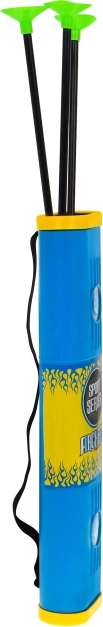 Sada obsahuje tri šípky s prísavkami, ktoré sú bezpečné na použitie vo vnútri aj vonku. Šípky sú uložené v farebnom koši, ktorý je ľahko prenositeľný.