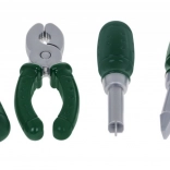 | - prilba cca 25,5 cm x 19 cm x 11 cm, - okuliare cca 14 cm x 5 cm x 7 cm, - skrutkovač cca 13 cm x 3,5 cm, - kladivo cca 13 cm x 8,8 cm, - kľúč cca 13 cm x 4 cm, - kliešte cca 14 cm x 6 cm, - obal cca 51 cm x 36 cm x 6,5 cm. |