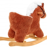Tento hojdací koník kombinuje bezpečie, pohodlie a zábavu v jednom. Mäkučký plyš je príjemný na dotyk, zatiaľ čo stabilné drevené lyžiny a úchyty zabezpečujú istú a bezpečnú hru. Integrované operadlo s pásmi pomáha držať správnu polohu aj tým najmenším deťom.