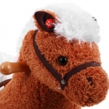 Po stlačení senzora v pravom uchu sa ozvú realistické zvuky cválajúceho koňa a erdžanie s primeranou hlasitosťou vhodnou pre malé deti. Hračka tak podporuje zmyslové vnímanie, rozvoj motoriky a prináša veľa radosti.