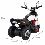 Táto elektrická motorka pre deti kombinuje atraktívny športový dizajn s praktickosťou a bezpečnosťou. Výkonný motor 18 W napájaný akumulátorom 6 V/4,5 Ah je ideálny pre prvé jazdné zážitky na dvore či v parku. Trojkolová konštrukcia zaisťuje výbornú stabilitu a jednoduché ovládanie vpred aj vzad.