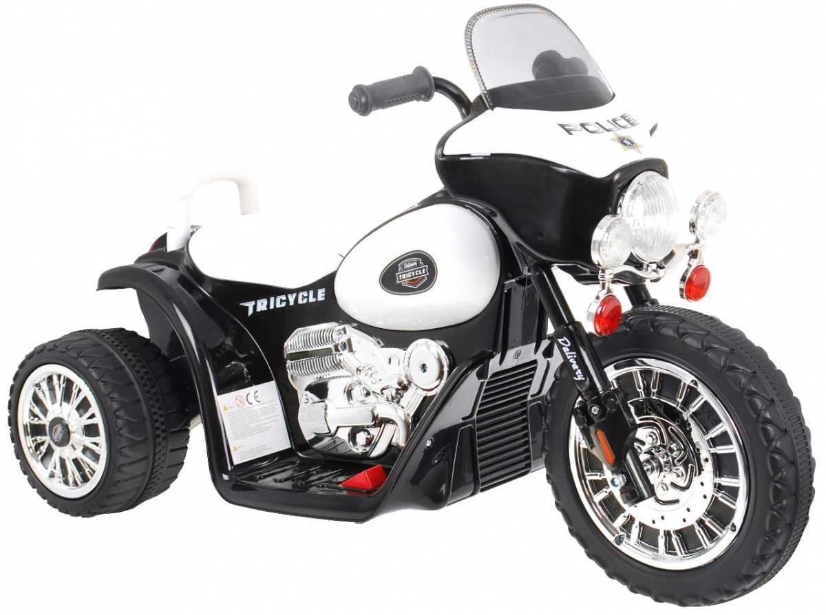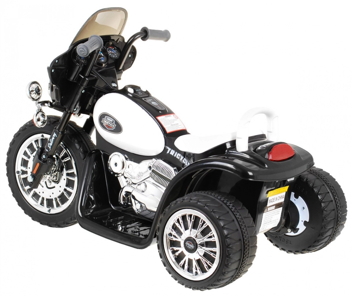 Detský elektrický chopper s 3 kolesami a LED svetlami – čierna