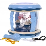 Táto interaktívna hudobná kocka rozvíja rytmus, sluch aj jemnú motoriku. Deti môžu bubnovať na horný bubienok, spievať do mikrofónu a sledovať farebne svietiaci kolotoč uprostred kocky. Hudobný panel ponúka bohatý výber melódií, riekaniek a príbehov – ideálne pre prvé hudobné krôčiky.