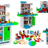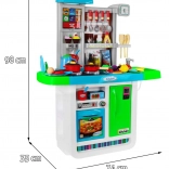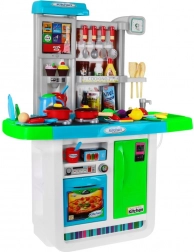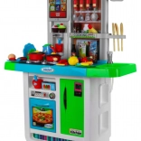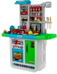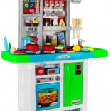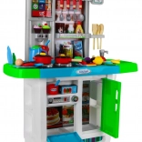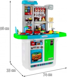 Táto priestranná detská kuchynka v živých farbách ponúka realistické doplnky a funkcie, vďaka ktorým si deti užijú napodobňovanie varenia ako v skutočnej kuchyni. Dva horáky so svetlami a zvukom vyprážania aj varenia, drez s kohútikom so skutočnou vodou a dotykový panel s melódiami a zvukmi zaručia pohlcujúcu hru.