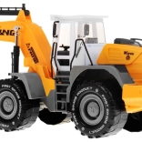| Tieto vozidlá plne odrážajú skutočné vozidlá z našich ciest. Táto jedinečná variácia umožní malým staviteľom vytvoriť skutočné stavenisko. Vyššie uvedené vozidlá sú návrhom z radu vzdelávacích hračiek, špeciálne navrhnutých pre deti tak, aby maximálne stimulovali ich rozvoj na mnohých úrovniach súčasne. Vozidlá sa pohybujú dopredu, dozadu, ľahko zatáčajú doľava a doprava. Ďalšou zaujímavosťou je pohyblivé vedro a otváracia kapota, spod ktorej vychádza figúrka veľkého motora. Táto multifunkčná vzdelávacia hračka, zatiaľ čo zabáva, rozvíja predstavivosť, motorickú koordináciu a motorické zručnosti batoľaťa. Hračka je zabalená vo farebnej krabici, ktorá sa výborne hodí ako darček.  | |