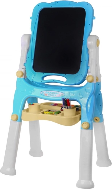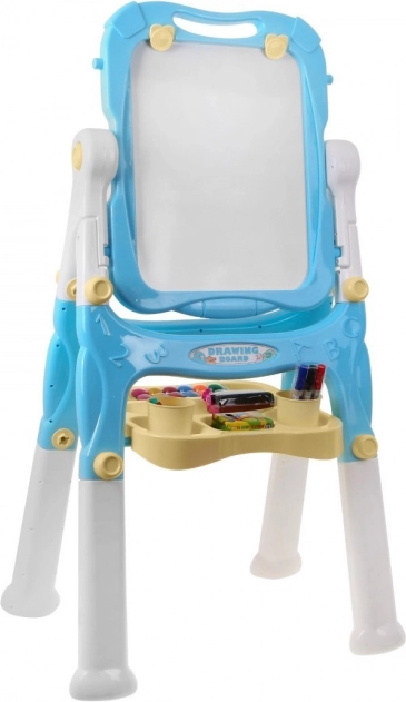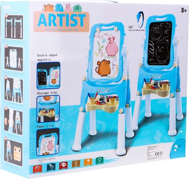 Obojstranná tabuľa na kreslenie je navrhnutá tak, aby podporovala detstvo plné kreativity. Na bielej strane môžu deti písať pomocou priložených fixiek a po použití všetko ľahko zmazať hubkou. Magnetická funkcia umožňuje prichytiť farebné magnety, rovnako ako klipy umožňujú upevnenie papiera na ďalšie maľovanie.