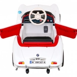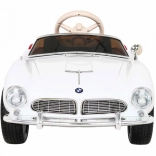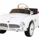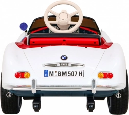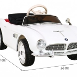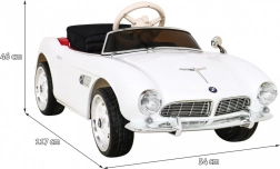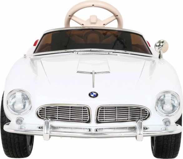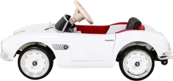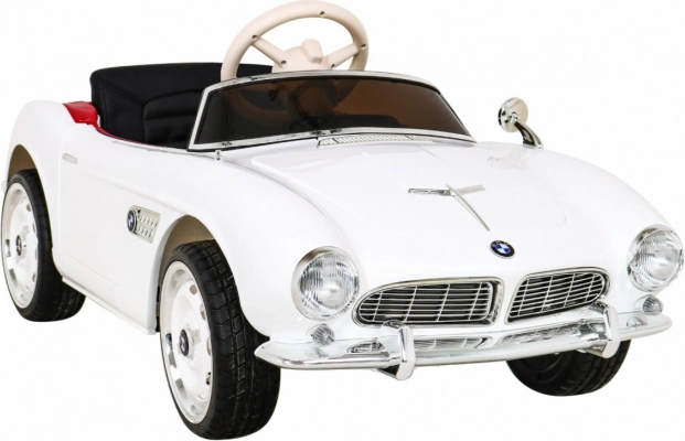 Elektrické autíčko BMW 507 retro v bielej farbe kombinuje ikonický dizajn s praktickosťou na každodenné hranie. Deti nadchne autentická mriežka, chrómované doplnky a otváracie dvere, ktoré zvyšujú realistickosť zážitku. Pohodlné sedadlo z čiernej ventilovanej eko kože s bezpečnostným pásom a LED svetlometmi sa postarajú o štýl aj bezpečie pri jazde. Maximálna nosnosť je 30 kg, rozmery vozidla sú 117 × 54 × 46 cm.