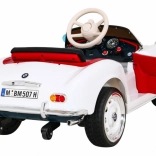 Štýlový roadster inšpirovaný klasikou BMW 507 poteší malých vodičov realistickým vzhľadom, pohodlnou jazdou a bezpečným ovládaním. Dva motory 2×35 W, akumulátor 12 V / 7 Ah, plynulý rozjazd, diaľkové ovládanie 2,4 GHz s tromi rýchlosťami a tlačidlom Stop, mäkké EVA kolesá s odpružením vpredu aj vzadu, LED svetlá a otváracie dvere – všetko pre zábavnú a bezpečnú jazdu.