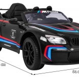 Štýlové detské autíčko na batériu inšpirované pretekárskym modelom BMW M6 GT3 prináša realistický zážitok z jazdy. Ponúka výkonný pohon 2x6 V, 12V/7Ah akumulátor, mäkké EVA kolesá a odpruženie vpredu aj vzadu pre pohodlnú jazdu. Deti potešia LED svetlá, otvárateľné dvere, eko-kožené sedadlo s pásmi a bohatý audio panel s MP3/AUX/USB/Bluetooth. Súčasťou je diaľkové ovládanie 2,4G s 3 rýchlosťami a funkciou Stop pre bezpečie.