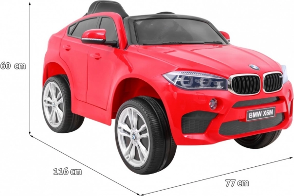 Doprajte deťom prémiový zážitok z jazdy v licenčnom štýle BMW X6M. Dva motory 2 × 45 W poháňané 12 V systémom s dvojicou akumulátorov 2 × 6 V/7 Ah poskytujú plynulý rozjazd, dve rýchlosti a jazdu vpred aj vzad. Mäkké EVA kolesá s priemerom 26 cm a zadné tlmiče zaručia pohodlie aj na horších povrchoch.