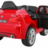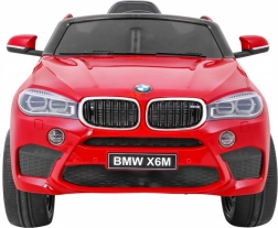 Štýlové detské elektrické auto BMW X6M v lakovanej červenej farbe ponúka dva výkonné motory 2 × 45 W, bateriový systém 12 V (2 × 6 V/7 Ah), diaľkové ovládanie 2,4 GHz s bezpečnostným tlačidlom STOP a pohodlné sedadlo z ekokože s viacbodovými pásmi. Kolesá z EVA peny, LED svetlá, audio panel s MP3/USB/AUX/TF a plynulý rozjazd zaručujú bezpečnú a zábavnú jazdu.