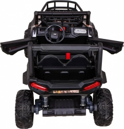 Robustné detské elektrické auto v štýle UTV prináša silný výkon 2×200 W, 24V batériu 7Ah a mäkké EVA kolesá pre pohodlnú jazdu v teréne. Diaľkový ovládač 2.4 GHz s bezpečnostným tlačidlom Stop, plynulý rozjazd, predné aj zadné LED svetlá, audio panel MP3/AUX/USB a priestranný zadný kufor robia z tohto off-road vozidla ideálnu voľbu na dobrodružstvá vonku.