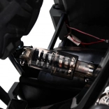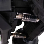 Veľké mäkké kolesá EVA 34×15 cm nehučia a lepšie tlmia vibrácie. Skrutkované, regulovateľné tlmiče (2× vpredu, 2× vzadu) zaisťujú stabilitu v teréne.