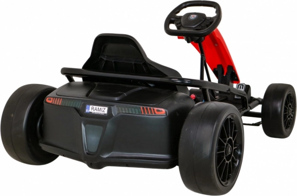 Unikátny dizajn kombinácie čiernej a červenej farby robí tento gokart nielen funkčným, ale aj atraktívnym pre deti. Bezpečnosť a komfort sú zaistené ergonomicky tvarovaným športovým sedadlom, ktoré podporuje uvoľnené a pohodlné sedenie aj pri dlhšej jazde.
