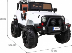 Detské elektrické autíčko All Terrain Jeep v bielej farbe prináša realistický zážitok z terénneho jazdenia. Vďaka výkonným motorom, kvalitným pneumatikám a robustnému dizajnu je ideálne na dobrodružstvá v záhrade aj na asfalte. Súčasťou je aj ovládač, ktorý umožňuje rodičom mať autíčko pod kontrolou. LED svetlá a autentické zvuky motora dodávajú jazde tú pravú atmosféru.