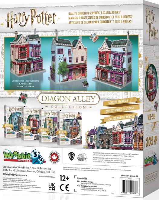 Postavte si čarodejnícku dvojicu obchodov z ulice Pokrivená (Príčná) – Prvotriedne potreby pre metlobal a Slug & Jiggers Apothecary – v detailnom 3D puzzle z 305 dielikov. Užite si lepidla netreba, odolné dieliky a zábavu pre celú rodinu. Ideálny darček pre fanúšikov HARRY POTTER aj milovníkov modelov.