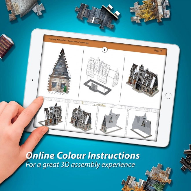 Objavte čaro Rokville s detailným modelom krčmy V Troch metlách. Realistická textúra „kameňa“, komíny a snehom pokryté strechy vytvárajú pôsobivý výstavný kúsok. 3D puzzle WREBBIT spája výzvu a relaxačný zážitok – bez lepidla a nástrojov.