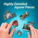 Nečíslované dieliky prinášajú vyváženú výzvu a radosť z objavovania. Puzzle možno ľahko rozložiť a skladať opakovane.