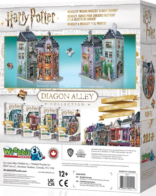 Vstúpte do čarodejníckeho sveta a zložte si realistický model dvoch legendárnych budov – Weasleyovských čarodejníckych žartov a Denného proroka. 3D puzzle WREBBIT využíva špeciálny, extra pevný materiál, vďaka ktorému jednotlivé dieliky držia tvar aj spoj bez nutnosti lepidla.