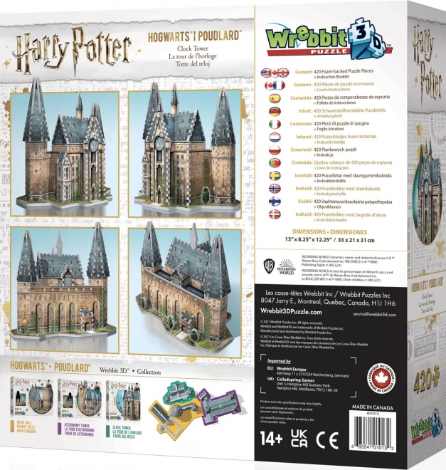 Zaži radosť z tvorby s originálnym 3D puzzlom WREBBIT Harry Potter – Hodinová veža. Vďaka dômyselnému tvaru dielikov a kvalitným materiálom sa diely spoja pevne bez lepenia a vytvoria realistický model Rokfortu s rozmermi cca 33 × 21 × 31 cm. Skladanie prebieha podľa referenčných snímok na krabici a prehľadného obrázkového návodu.