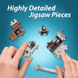 Puzzle je navrhnuté tak, aby držalo pohromade bez potreby lepidla, vďaka dôvtipnému tvaru a hrúbke dielikov.