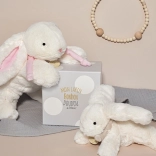 Roztomilý zajko v krémovej farbe s ružovými uškami je perfektným darčekom, ktorý poteší každé dieťa. Uložené v nádhernej darčekovej krabičke, ktorá evokuje modernosť a luxus, je táto hračka ideálnym darčekom k narodeninám alebo inej významnej udalosti.