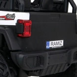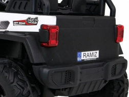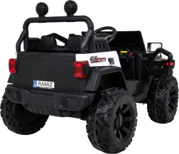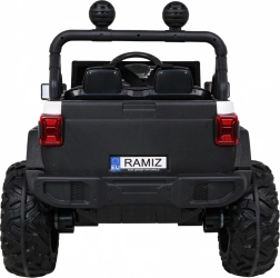 Toto terénne autíčko RAMIZ je ako stvorené na dobrodružstvá. Prepínateľný pohon 2WD/4WD umožní prispôsobiť jazdu podmienkam, zatiaľ čo štyri motory 4×35 W, plynulý rozjazd a dva jazdné stupne zaručia plynulé a isté ovládanie. Veľké penové EVA kolesá 35 × 15 cm v kombinácii s odpružením vpredu aj vzadu zabezpečujú výbornú trakciu a komfort na chodníku aj na záhrade. Praktické LED osvetlenie vpredu aj vzadu dodáva štýl a zvyšuje bezpečnosť.