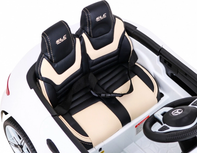Toto elegantné detské vozidlo vychádza z obľúbenej verzie Mercedes-Benz SLC 300 Final Edition a nadchne precíznymi detailmi karosérie, otváracími dverami s blokáciou a pohodlným sedadlom z vetranej eko kože s bezpečnostnými pásmi. Vďaka dvojitému pohonu 2×30 W a batériám 2×6 V / 4,5 Ah je jazda plynulá a zábavná doma aj vonku.