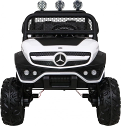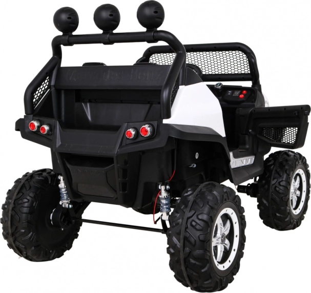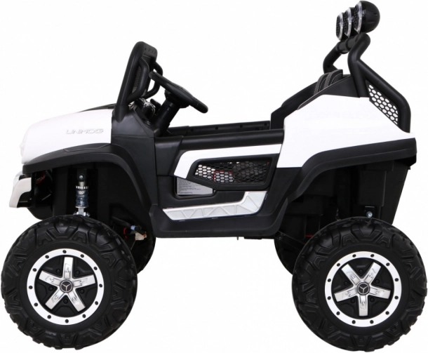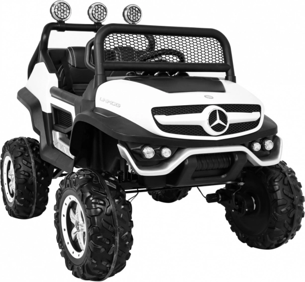 Robustné detské autíčko Mercedes‑Benz Unimog je stavané na dobrodružstvá v teréne. Vďaka štyrom motorom 35 W a prepínaniu medzi 2×4 a 4×4 si poradí s nerovnosťami, zatiaľ čo nastaviteľné odpruženie a veľké EVA kolesá (Ø 31 cm) zaistia pohodlie a trakciu. Ovládajte jazdu na diaľku pomocou 2.4G ovládača s tromi rýchlosťami a bezpečnostným tlačidlom STOP.